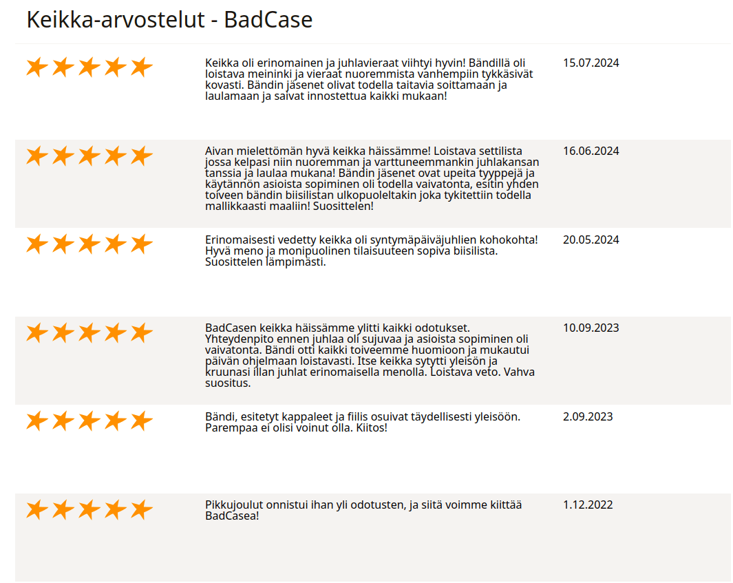 Bilebändi ja coverbändi Hyvinkää