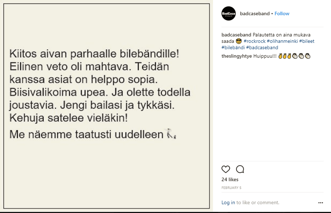 Bilebändi ja coverbändi Vantaa